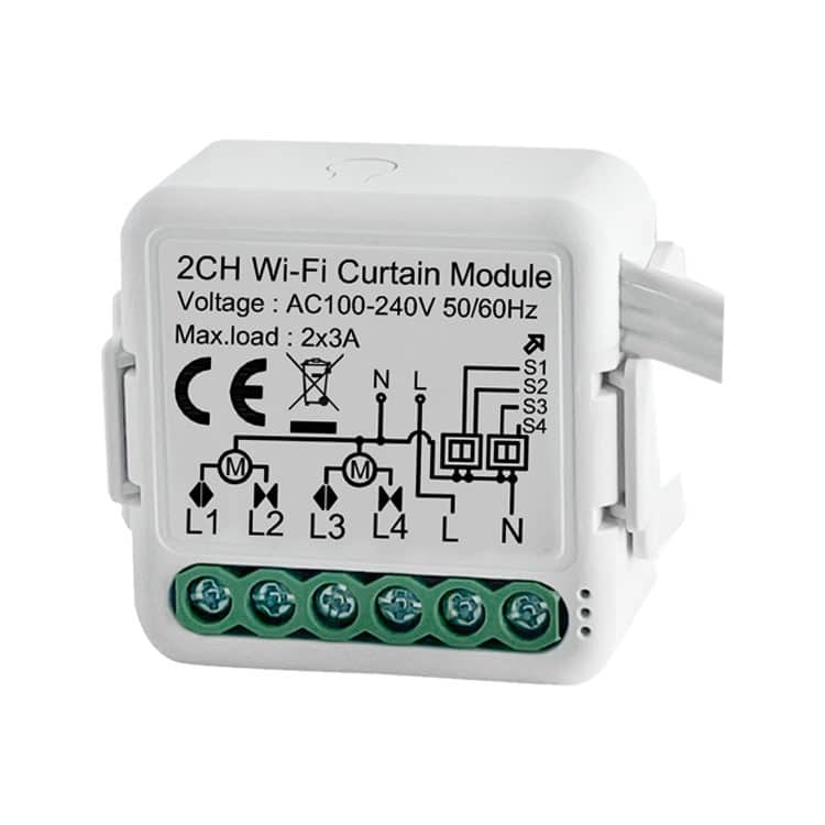 Netplus 2-channel Wi-Fi smart shutter switch module works with motorized sunblinds, window curtains, roller shutters, awnings, etc. and let them remote or wireless control from smartphone App.